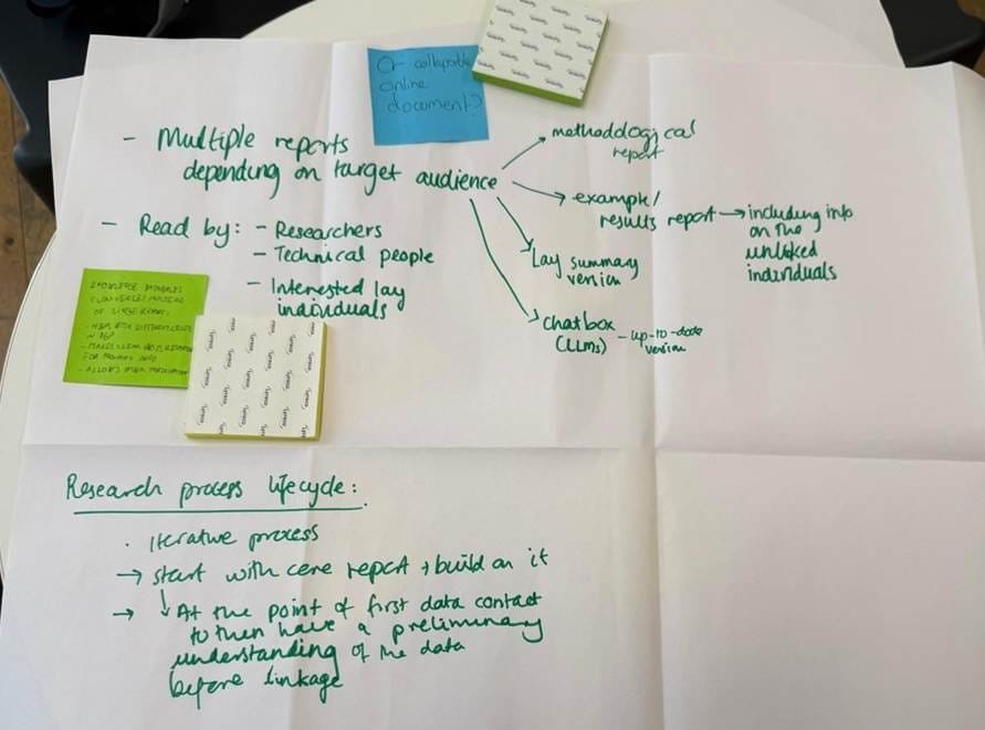 In our group discussion, which brought together linkers, data owners, and analysts, several surprises emerged. When we shared examples of linkage reports, linkers assumed that users would want detailed methodological specifications. Instead, users emphasised their need for contextualised support in understanding how linkage bias or methodological choices might affect their specific research questions. This points to a deeper challenge: linkage is often conducted upstream of any given project, with limited scope for adaptation once automated pipelines are in place.